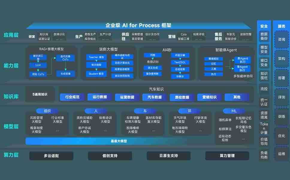 端到端的一站式AI工作空间深度融合了从企业战略规划到日常经营的全流程业务板块,,,定向解决车企内部领域多、、部门多、、、、链条长、、场景碎片化等难题,,,支持车企快速构建以AI为核心的生产力写作体系,,实现任务执行与AI能力的无缝集成与交互